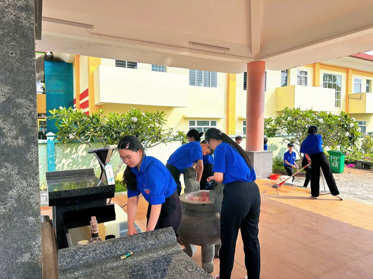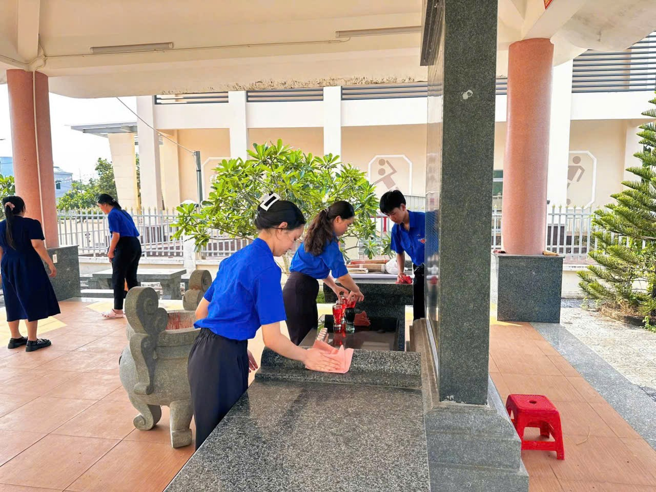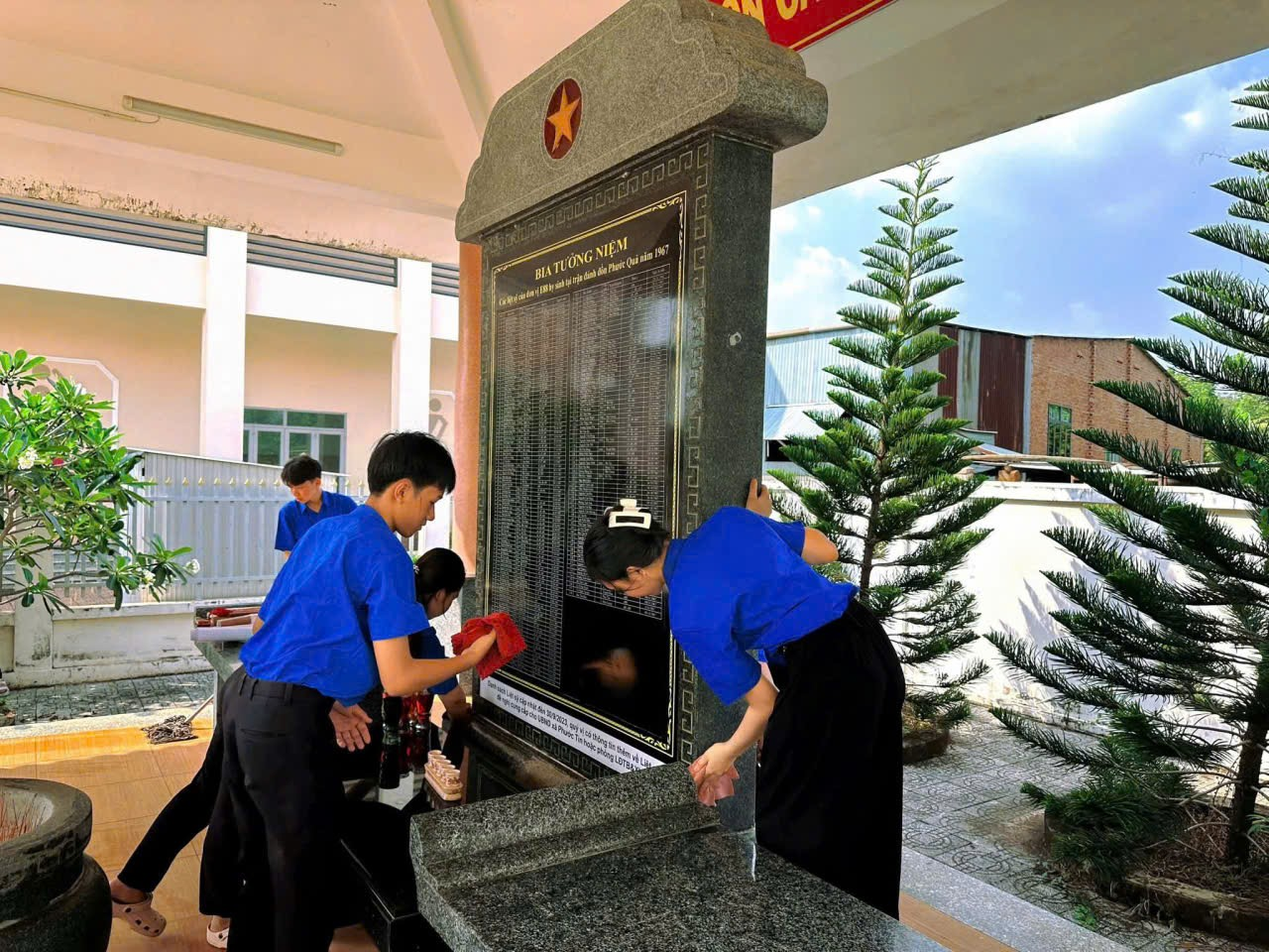 Trong không khí trang nghiêm, thành kính, đông đảo đoàn viên, thanh niên đã tham gia dọn dẹp vệ sinh khuôn viên bia tưởng niệm, thu gom rác thải, phát quang bụi rậm, chỉnh trang cảnh quan khu vực. Các phần việc được triển khai đồng bộ, đảm bảo khu vực bia tưởng niệm luôn sạch đẹp, khang trang, thể hiện sự tôn nghiêm của một địa chỉ đỏ trên địa bàn.<br />