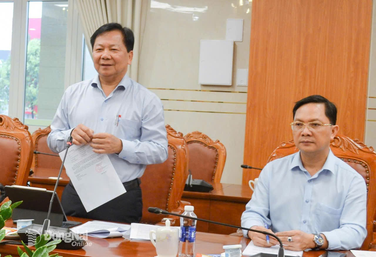 Ủy viên Ban Thường vụ Tỉnh ủy, Phó Chủ tịch UBND tỉnh Đồng Nai Lê Trường Sơn phát biểu tại cuộc họp