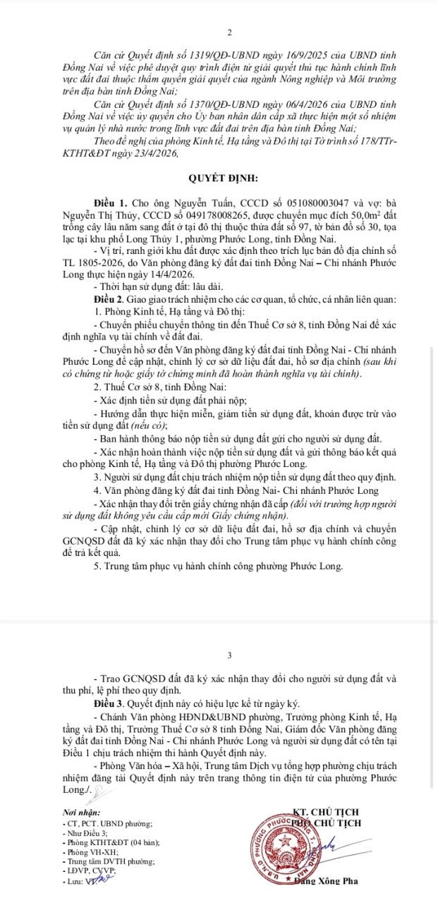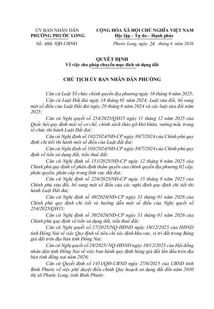QUYẾT ĐỊNHVề việc cho phép chuyển mục đích sử dụng đất