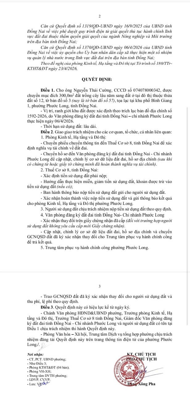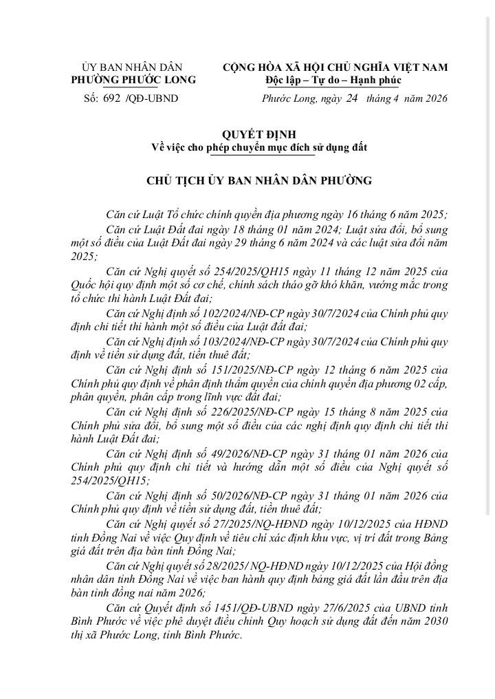 QUYẾT ĐỊNHVề việc cho phép chuyển mục đích sử dụng đất