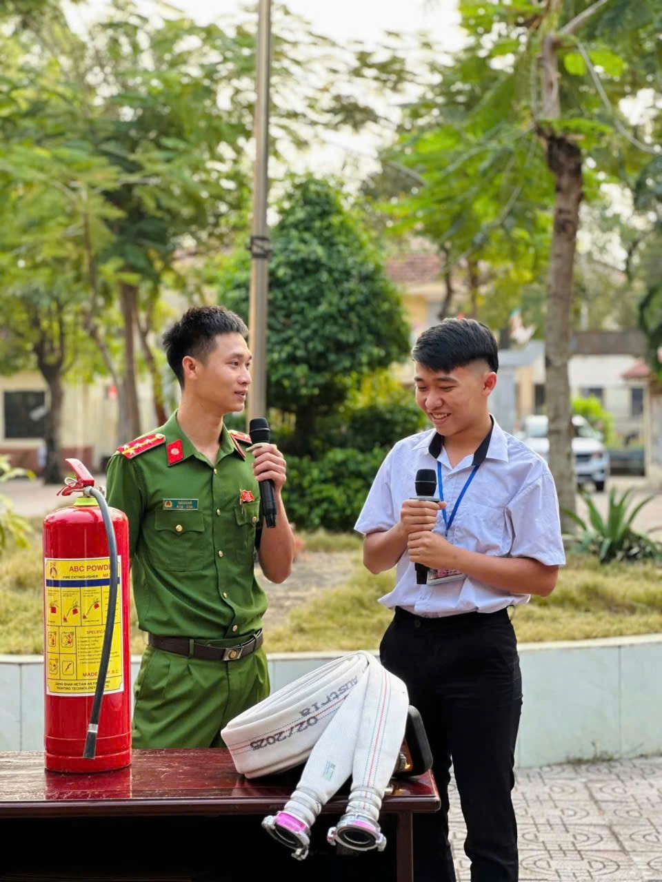Tại buổi tuyên truyền, Đại úy Trần Đại Võ, cán bộ Đội Chữa cháy và Cứu nạn, cứu hộ khu vực 13 - Công an tỉnh Đồng Nai đã trực tiếp truyền đạt các quy định của pháp luật về PCCC, đồng thời hướng dẫn nhiều kỹ năng thiết thực giúp học sinh nâng cao khả năng tự bảo vệ bản thân khi xảy ra sự cố. Nội dung tuyên truyền tập trung vào việc phân biệt các loại bình chữa cháy như bình khí CO₂ và bình bột thông qua hình dáng, ký hiệu nhận biết; cách kiểm tra hạn sử dụng, mức độ an toàn của bình chữa cháy; giới thiệu các trang thiết bị PCCC cần thiết trong trường học.