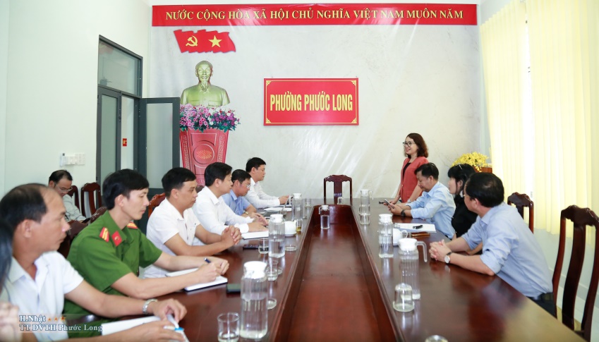 Về phía phường Phước Long tiếp và làm việc với Đoàn có ông Nguyễn Khắc Hạnh, Phó Bí thư Đảng ủy, Chủ tịch UBND phường, ông Nguyễn Trung Thành, UVBTV Đảng ủy, Phó Chủ tịch UBND phường, đại diện lãnh đạo Công an, Phòng VH&XH, Kinh tế, Hạ tầng và Đô thị, Văn Phòng HĐND&UBND, Trung tâm DVTH.