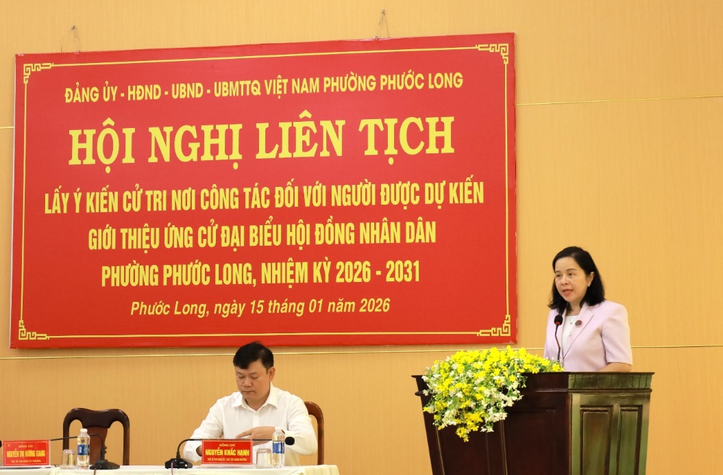 Sáng 15/01/2026, Đảng ủy phường Phước Long tổ chức Hội nghị liên tịch lấy ý kiến cử tri nơi công tác đối với người được dự kiến giới thiệu ứng cử đại biểu Hội đồng nhân dân phường Phước Long, nhiệm kỳ 2026 – 2031.
