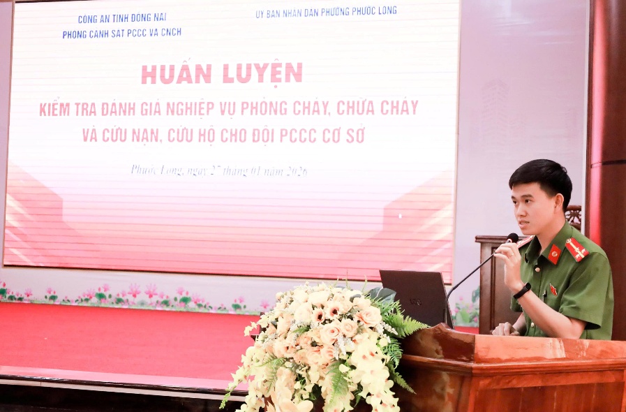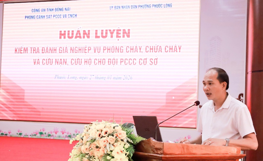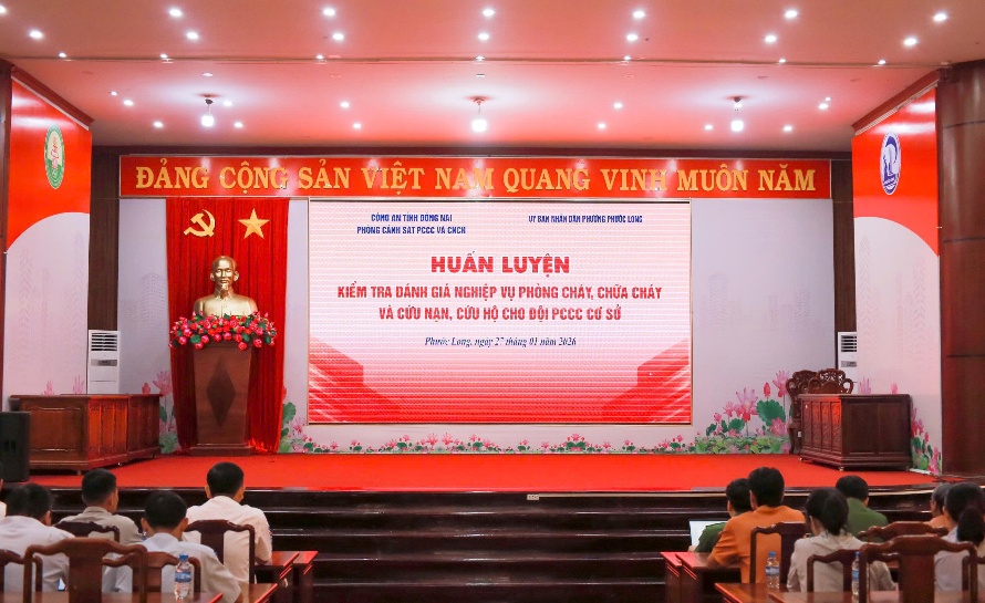 Nhằm nâng cao kỹ năng, nghiệp vụ phòng cháy chữa cháy và cứu nạn, cứu hộ, thực hiện hiệu quả phương châm 4 tại chỗ “chỉ huy tại chỗ, lực lượng tại chỗ, phương tiện tại chỗ, hậu cần tại chỗ”. Ngày 27-1, Phòng cảnh sát phòng cháy chữa cháy và cứu nạn, cứu hộ (PCCC&CNCH) Công an tỉnh Đồng Nai phối hợp với UBND phường Phước Long tổ chức huấn luyện, kiểm tra đánh giá nghiệp vụ phòng cháy, chữa cháy và cứu nạn, cứu hộ năm 2026 cho Đội phòng cháy chữa cháy cơ sở của Chợ Phước Long.
