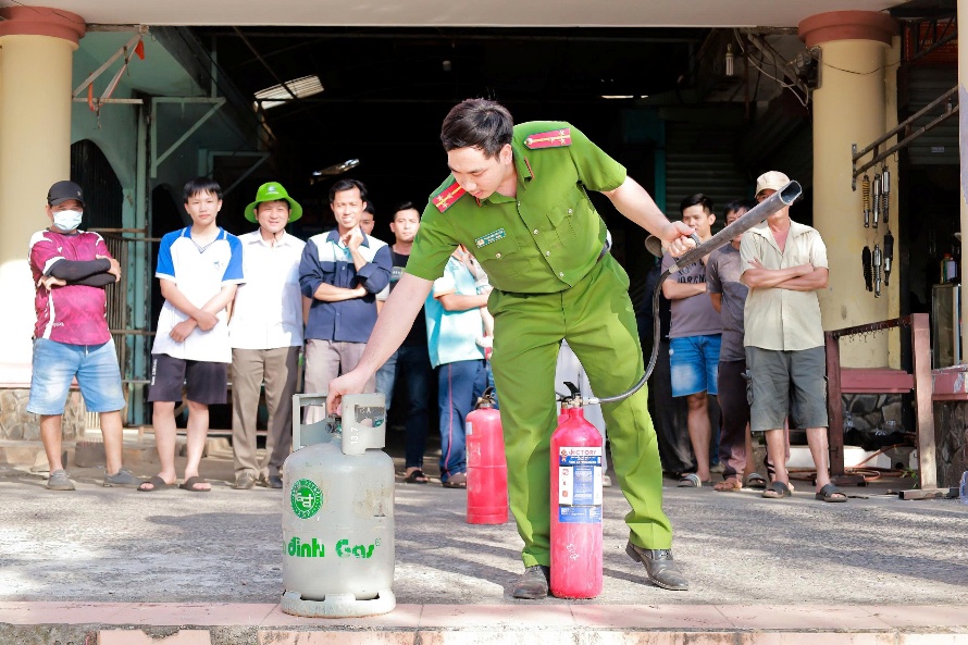 Đến với nội dung thực tập phương án chữa cháy và cứu nạn, cứu hộ năm 2026, các đối tượng đã được hướng dẫn kỹ năng xử lý tình huống khi có sự cố rò rỉ khí gas, thoát nạn trong đám cháy, cách bảo quản đúng cách và thao tác sử dụng phương tiện chữa cháy thông dụng để dập tắt đám cháy ngay từ ban đầu, kỹ năng cứu nạn, cứu hộ…Đồng thời tham gia xử lý tình huống giả định “xảy ra cháy tại khu vực kinh doanh trong chợ Phước Long do sự cố hệ thống điện”. Qua đây, các lực lượng của Đội phòng cháy, chữa cháy cơ sở Chợ Phước Long cùng với sự trợ giúp của người dân đã thực hiện biện pháp khống chế đám cháy ngay từ ban đầu và chờ sự chi viện của Đội chữa cháy và cứu nạn, cứu hộ khu vực 13 đến phối hợp, hiệp đồng dập tắt cháy.