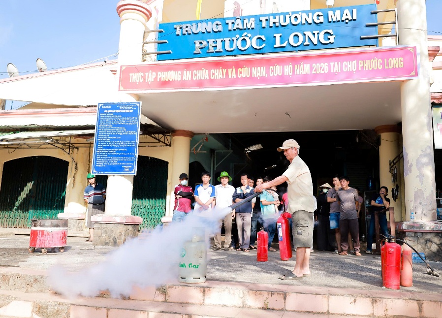 Chợ Phước Long là nơi tập trung đông người, nhiều hộ kinh doanh buôn bán, hàng hóa đa dạng dẫn đến tiềm ẩn nguy cơ cháy, nổ, nhất là thời điểm hiện nay gần đến Tết xuân Bính Ngọ năm 2026 lượng hàng hóa về đây nhiều. Do vậy, việc tổ chức huấn luyện, kiểm tra nhằm giúp cho Đội phòng cháy chữa cháy cơ sở của Chợ Phước Long, các hộ tiểu thương và người dân nâng cao ý thức, trách nhiệm và tích cực tham gia vào công tác PCCC và CNCH, hướng đến một cái Tết an lành và bình yên.