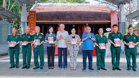 Các đại biệu tham dự lễ Ông Nguyễn Văn Thỏa –Nguyên UVBTV tỉnh ủy, Nguyên PCT UBND tỉnh Bình Phước (cũ) phát biểu tại buổi lễ Ban tổ chức tặng quà cho các gia đình Mẹ VNAH, gia đình chính sách, gia đình cơ sở cách mạng Đại tá, GS, TS, Viện trưởng viện nghiên cứu phát triển phương đông, UV Đoàn chủ tịch UBTW Liên hiệp các hội khoa học kỹ thuật – Nhà văn Trình Quang Phú tặng sách về Bác Hồ cho các đại biểu dự lễ.