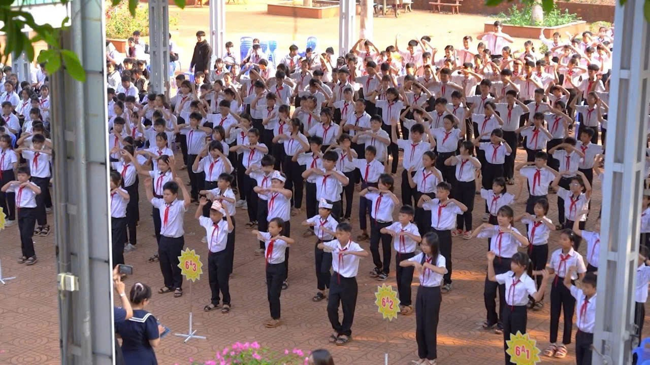 Tiếp nối chương trình là các hoạt động tập thể ấn tượng như múa đồng diễn trên nền ca khúc “Hát vang trong kỷ nguyên mới” với sự tham gia đồng đều, đầy nhiệt huyết của đông đảo đội viên; phần biểu diễn võ nhạc Vovinam mạnh mẽ, dứt khoát, thể hiện tinh thần rèn luyện thể chất, ý chí kiên cường của học sinh nhà trường.