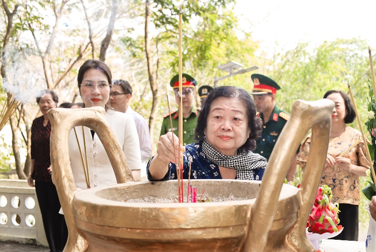 Đồng chí Trương Mỹ Hoa dâng hoa, dâng hương tại “Đền thờ liệt sĩ và đồng bào tử nạn núi Bà rá”, Nhà bia tưởng niệm trên Đồi bằng lăng và tham quan cùng với lãnh đạo phường Phước Long, phường Phước Bình