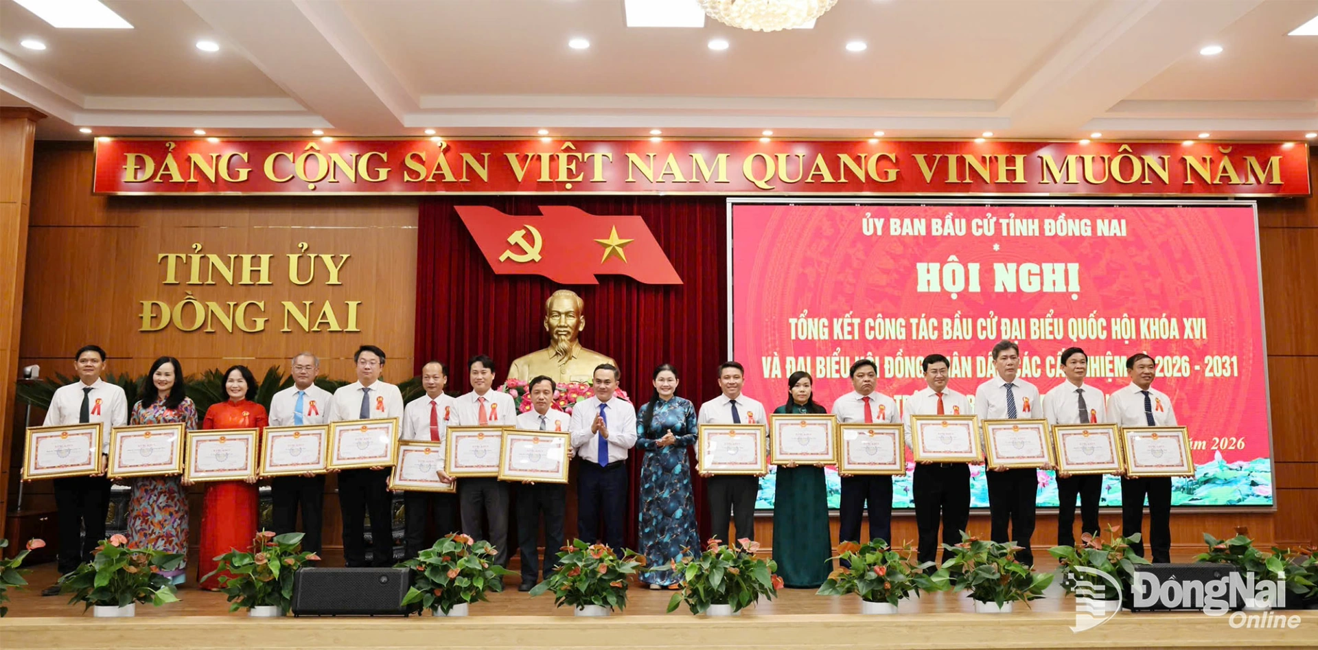 Tại hội nghị, 91 tập thể, cá nhân đạt thành tích xuất sắc trong công tác bầu cử đại biểu Quốc hội khóa XVI và đại biểu HĐND các cấp nhiệm kỳ 2026-2031 đã được trao tặng bằng khen của UBND tỉnh. Đặc biệt hội nghị còn công bố quyết định của Chủ tịch nước về việc trao tặng Huân chương Lao động hạng Nhất cho đồng chí Võ Tấn Đức, Phó Bí thư Tỉnh ủy, nguyên Chủ tịch UBND tỉnh và 2 Huân chương Lao động hạng Ba cho các đồng chí: Nguyễn Kim Long, Ủy viên Ban Thường vụ Tỉnh ủy, Phó Chủ tịch Thường trực UBND tỉnh; Hồ Văn Hà, Tỉnh ủy viên, Phó Chủ tịch UBND tỉnh vì có thành tích xuất sắc trong chỉ đạo, điều hành công tác phát triển hạ tầng xã hội, thu hút đầu tư trên địa bàn tỉnh Đồng Nai, đồng chí Hồ Văn Nam, Ủy viên Ban Thường vụ Tỉnh ủy, Bí thư Đảng ủy, Chủ tịch HĐND phường Trấn Biên được tặng thưởng Huân chương Lao động hạng Ba vì có thành tích xuất sắc trong công tác bồi thường giải phóng mặt bằng tỉnh Đồng Nai.
