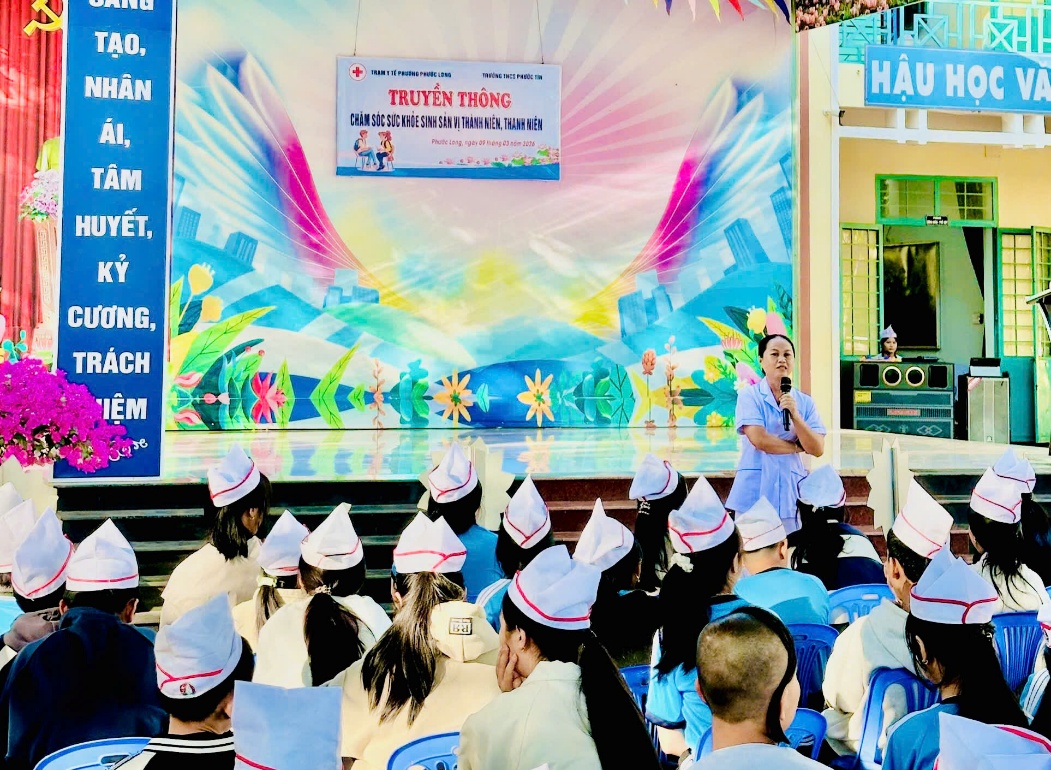 Sáng 9-3-2026, Trạm Y tế phường Phước Long phối hợp với Trường THCS Phước Tín tổ chức buổi truyền thông về chăm sóc sức khỏe sinh sản vị thành niên, thanh niên cho hơn 600 học sinh của nhà trường.