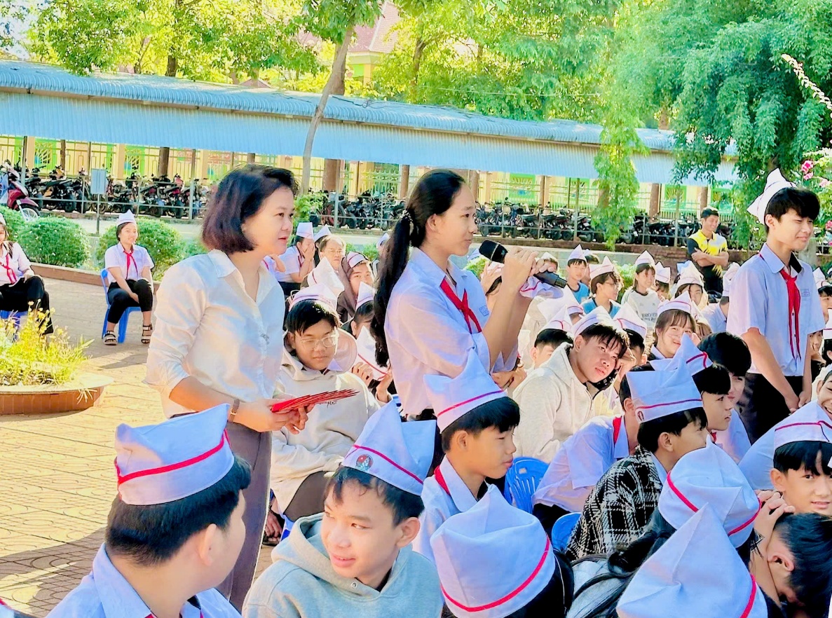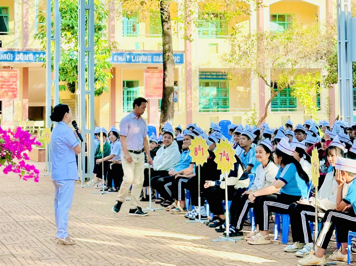 Tham dự chương trình có đại diện Trạm Y tế phường Phước Long, Ban Giám hiệu Trường THCS Phước Tín, cùng các thầy cô giáo và đông đảo học sinh.