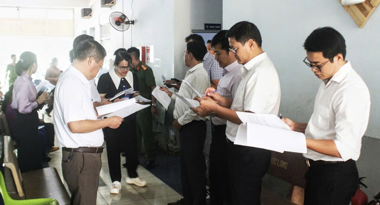 Đồng chí Đặng Xông Pha UVBTV Đảng ủy, Phó Chủ tịch UBND phường Họp, khảo sát hiện trạng các hạng mục đề xuất dự kiến cải tạo, sửa chữa của Trung tâm Y tế khu vực Phước Long.