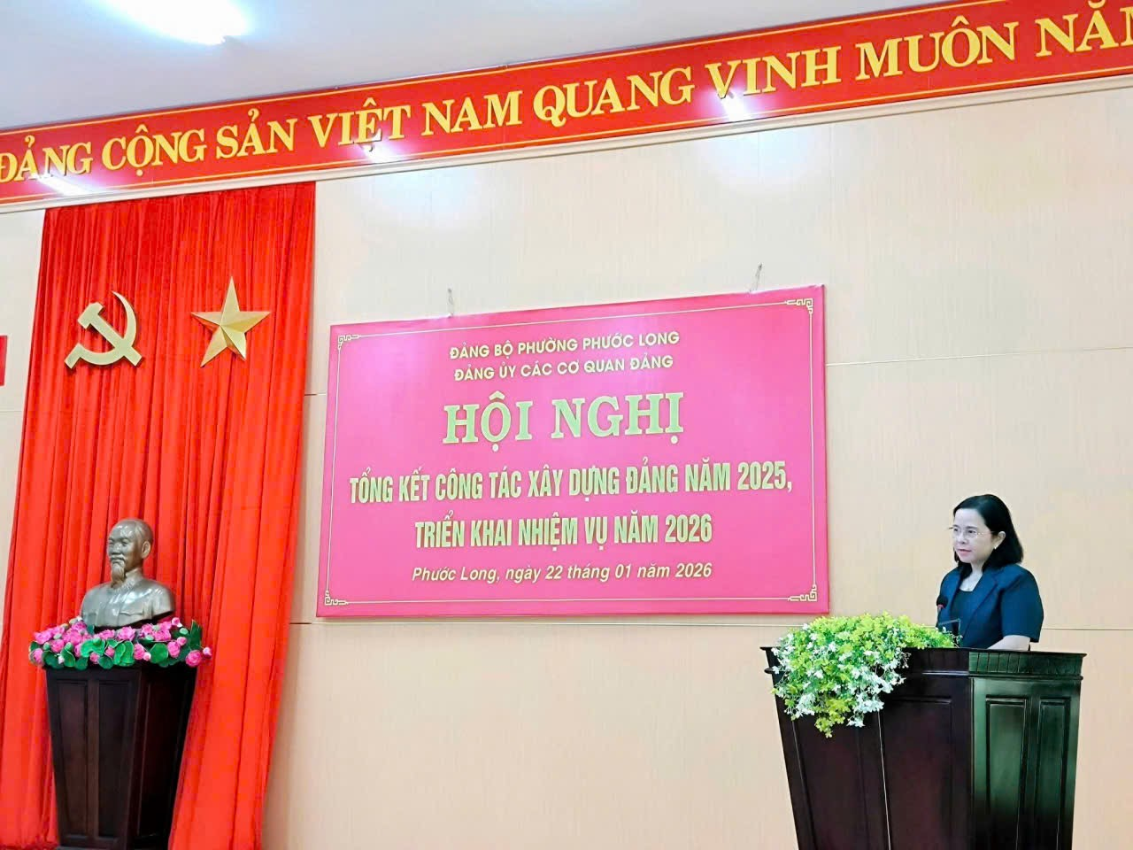 Chiều ngày 22/01, Đảng bộ các cơ quan Đảng phường Phước Long tổ chức Hội nghị tổng kết công tác xây dựng Đảng năm 2025 và triển khai nhiệm vụ năm 2026.