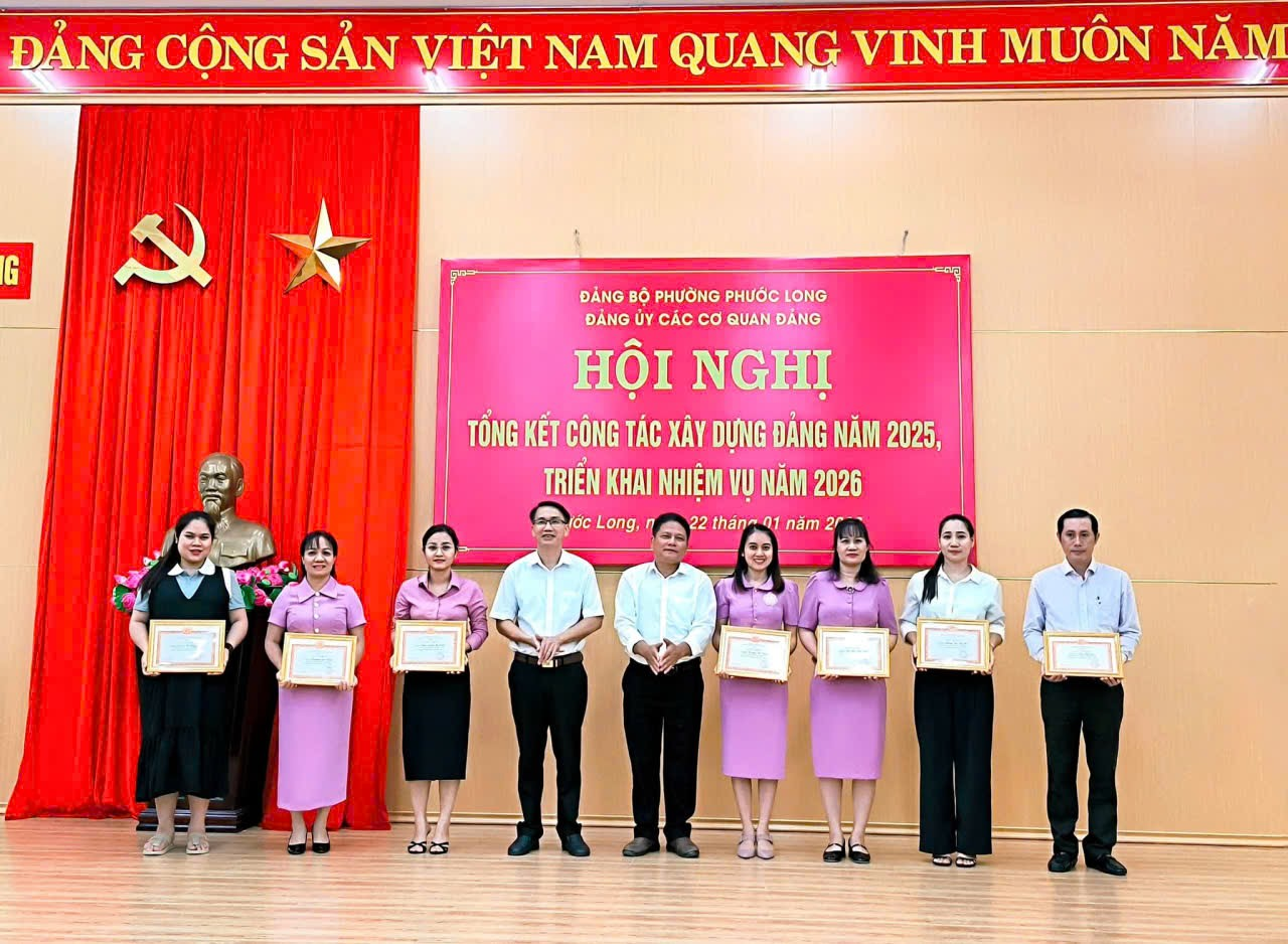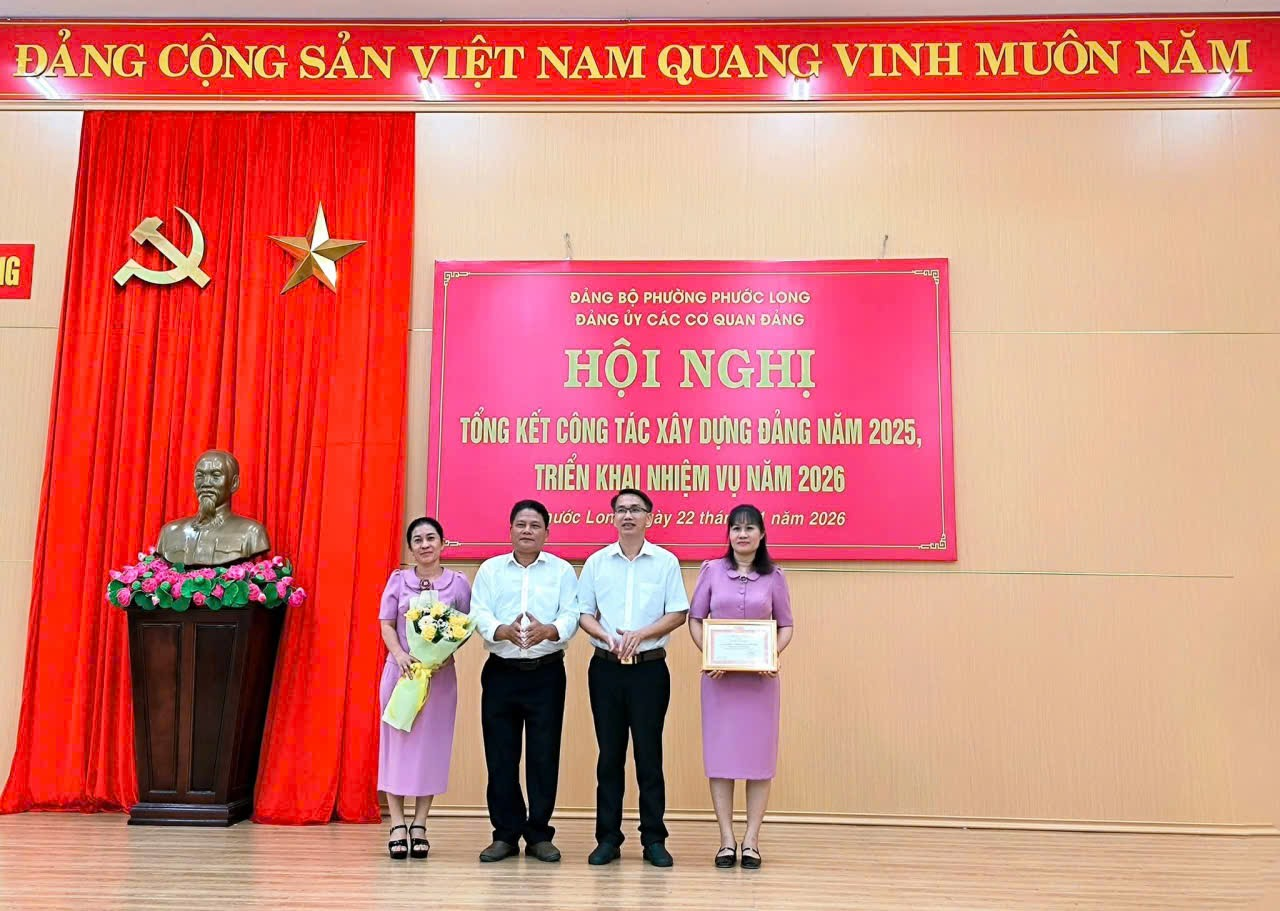 Nhân dịp này, Đảng bộ các cơ quan Đảng phường Phước Long đã khen thưởng 01 chi bộ và 08 đảng viên hoàn thành xuất sắc nhiệm vụ năm 2025; đồng thời quyết định công nhận mô hình “Chi bộ bốn tốt” năm 2025 cho 05 chi bộ trực thuộc.