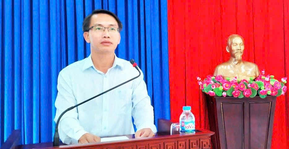 Các đồng chí lãnh đạo và các đại biểu tham dự hội nghị Phó bí thư thường trực Đảng ủy, Chủ tịch HĐND phường Lê Đình Thắng phát biểu tại hội nghị