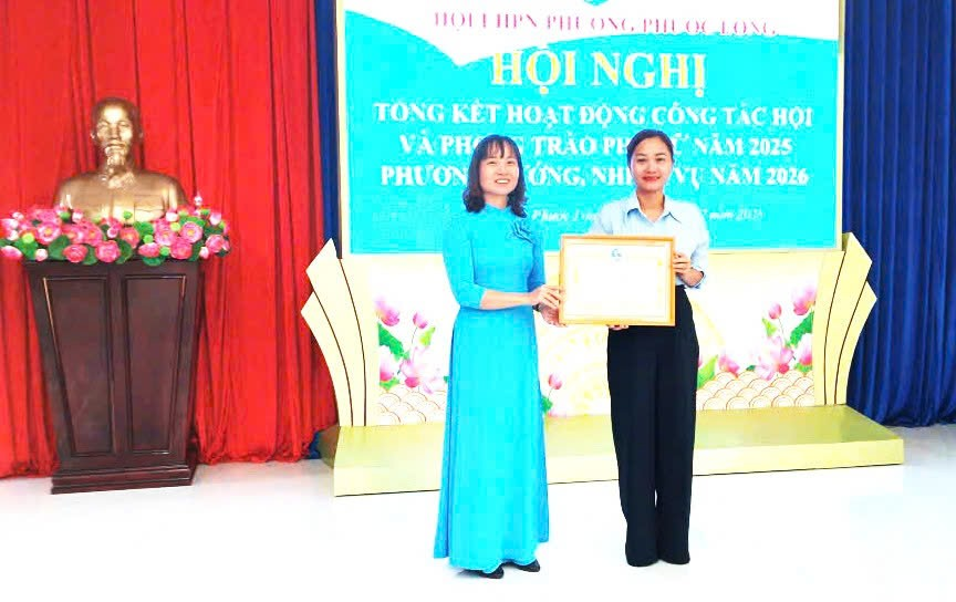 Hội nghị xác định mục tiêu năm 2026 tiếp tục nâng cao chất lượng hoạt động Hội, phát huy vai trò của phụ nữ trong xây dựng phường Phước Long văn minh, hiện đại. Nhân dịp này, Hội LHPN phường Phước Long có 01 cá nhân vinh dự được Hội LHPN tỉnh trao tặng Bằng khen; 04 tập thể và 04 cá nhân được Hội LHPN phường khen thưởng vì có thành tích xuất sắc trong công tác Hội và phong trào phụ nữ năm 2025. X. NIÊN/TTDVTH Toàn cảnh hội nghị Các đồng chí lãnh đạo và các đại biểu tham dự tại hội nghị Bà Nguyễn Thị Thanh Phương, Phó chủ tịch Hội LHPN tỉnh Đồng Nai phát biểu tại hội nghị Đồng chí Lê Đình Thằng – Phó bí thư thường trực Đảng ủy,Chủ tịch HĐND phường phát biểu tại hội nghị Đồng chí Nguyễn Thị Thu Hiền - Chủ tịch Hội LHPN phường phát biểu khai mạc hội nghị.