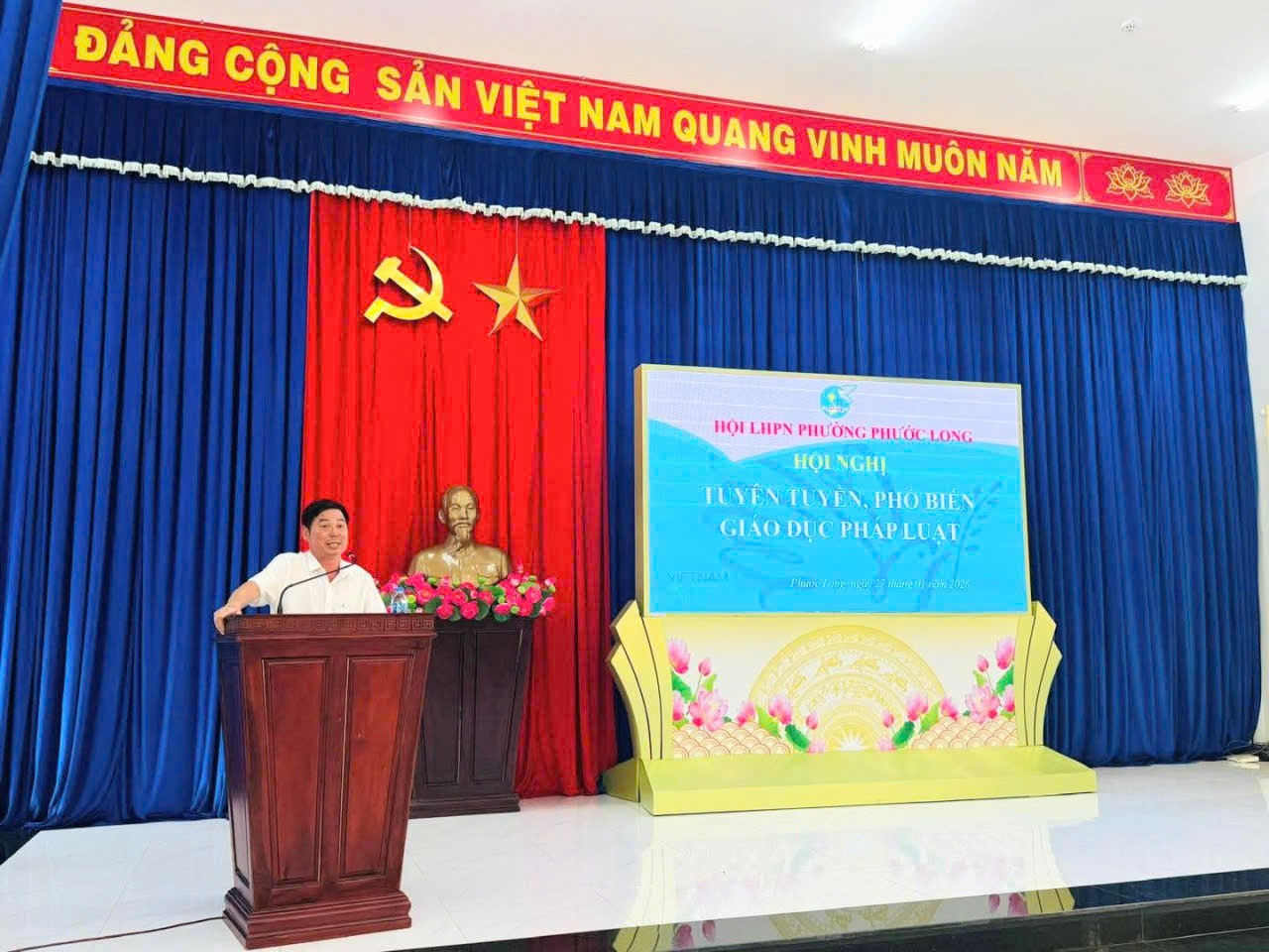 Nhằm nâng cao nhận thức, ý thức chấp hành pháp luật cho cán bộ, hội viên phụ nữ trên địa bàn phường, vừa qua, Hội Liên hiệp Phụ nữ (LHPN) phường Phước Long đã tổ chức Hội nghị tuyên truyền, phổ biến, giáo dục pháp luật cho cán bộ, hội viên phụ nữ. Tham dự hội nghị có các đồng chí trong Ban Thường vụ Hội LHPN phường; cán bộ chi, tổ hội cùng đông đảo hội viên phụ nữ đang sinh hoạt tại các khu phố trên địa bàn phường. Hội nghị được tổ chức trong không khí nghiêm túc, thiết thực, thu hút sự quan tâm và tham gia tích cực của hội viên. Báo cáo viên tại hội nghị là đồng chí Lê Thành Dân – Phó Chánh Văn phòng HĐND – UBND phường Phước Long, nguyên Trưởng Phòng Tư pháp thị xã Phước Long (cũ), người có nhiều kinh nghiệm trong công tác pháp luật và tuyên truyền pháp luật ở cơ sở. Tại hội nghị, báo cáo viên đã trực tiếp tuyên truyền, phổ biến những nội dung cơ bản, trọng tâm của các văn bản pháp luật liên quan mật thiết đến đời sống của phụ nữ và gia đình, gồm: Luật Phòng, chống bạo lực gia đình; Luật Hôn nhân và Gia đình; Luật Bình đẳng giới; Luật Trẻ em. Nội dung tuyên truyền được trình bày ngắn gọn, dễ hiểu, tập trung vào những điểm mới, những quy định quan trọng cần lưu ý, đồng thời lồng ghép các tình huống thực tiễn thường gặp trong đời sống gia đình và xã hội hiện nay, giúp hội viên dễ tiếp thu và vận dụng. Thông qua hội nghị, cán bộ, hội viên phụ nữ được trang bị thêm kiến thức pháp luật, nâng cao hiểu biết về quyền và nghĩa vụ của bản thân trong hôn nhân, gia đình và xã hội; đồng thời nâng cao kỹ năng phòng ngừa, phát hiện và xử lý các hành vi bạo lực gia đình, xâm hại trẻ em, vi phạm bình đẳng giới. Qua đó, góp phần phát huy vai trò, trách nhiệm của phụ nữ trong việc xây dựng gia đình no ấm, bình đẳng, tiến bộ, hạnh phúc và văn minh. Đây là hoạt động thiết thực, có ý nghĩa quan trọng trong việc đổi mới và nâng cao hiệu quả công tác tuyên truyền, phổ biến, giáo dục pháp luật của Hội LHPN phường Phước Long; góp phần xây dựng nếp sống văn minh, thượng tôn pháp luật trong cán bộ, hội viên và Nhân dân trên địa bàn, đáp ứng yêu cầu nhiệm vụ trong tình hình mới.