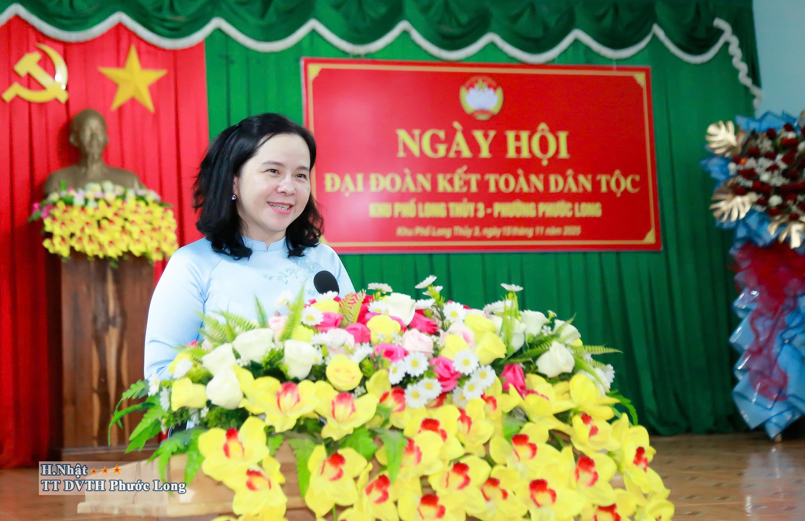 Dự và phát biểu tại Ngày hội, Tỉnh ủy viên, Bí thư Đảng ủy phường Phước Long Nguyễn Thị Hương Giang khẳng định đại đoàn kết toàn dân tộc là truyền thống, là tài sản, là di sản vô giá của cha ông, là sức mạnh làm nên mọi thắng lợi, mọi thành tựu của dân tộc ta, “Đoàn kết” đó là chân lý, là phương châm hành động. Tỉnh ủy viên, Bí thư Đảng ủy phường Phước Long Nguyễn Thị Hương Giang thông tin về lãnh đạo, chỉ đạo và điều hành của tỉnh Đồng Nai, phường Phước Long trong thời gian qua từ sau khi sắp xếp đơn vị hành chính, đồng thời mong muốn cán bộ, đảng viên và Nhân dân khu phố Long Thủy 3 phát huy hơn nữa sức mạnh đại đoàn kết toàn dân tộc, đoàn kết thực hiện thắng lợi các chỉ tiêu của khu phố đề ra năm 2026, góp phần vào sự phát triển chung của phường Phước Long.