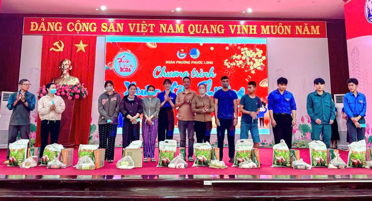Tết Nguyên đán không chỉ là thời khắc sum họp gia đình, mà còn là dịp để sẻ chia yêu thương, lan tỏa tinh thần nhân ái và trách nhiệm với cộng đồng. Phát huy truyền thống tốt đẹp đó, trong không khí rộn ràng của những ngày giáp Tết Bính Ngọ năm 2026, chiều ngày 05/02, Đoàn Thanh niên phường Phước Long phối hợp cùng Công ty Vinh Phượng đã tổ chức chương trình “Xuân Yêu Thương”, trao tặng quà Tết cho thanh niên có hoàn cảnh khó khăn trên địa bàn phường.